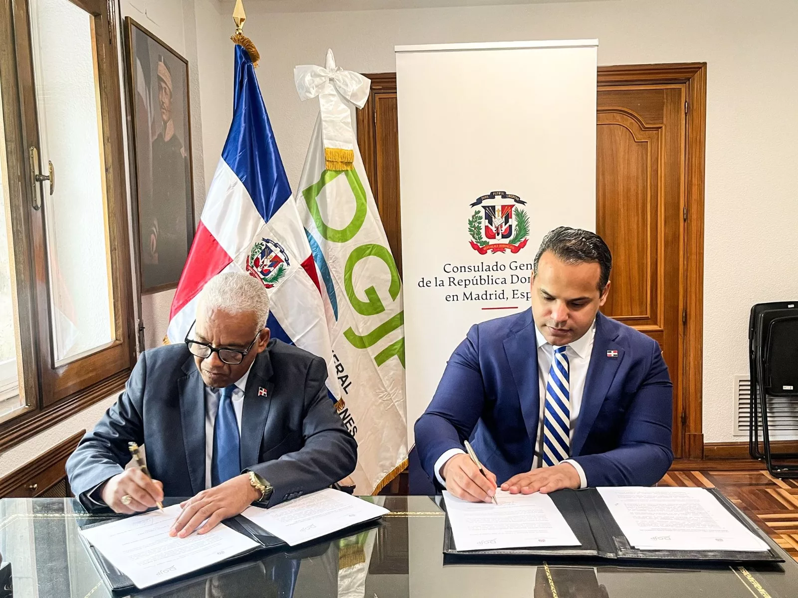 Santo Domingo.- La Dirección General de Jubilaciones y Pensiones a Cargo del Estado (DGJP) y el Consulado Dominicano en España han firmado un acuerdo que permite la instalación de los servicios de esta institución estatal en la sede consular.