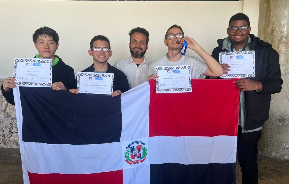 La delegación dominicana estuvo integrada por los estudiantes Emil Alejandro Peralta Cabrera, del Colegio Inmaculada Concepción; William Gabriel Evertz Adames, del Sunrise School; Héctor Manuel Mercedes Ferreras, del Colegio Divina Pastora; y Johnny Ho Chen, del Colegio Los Palmares. La representación estuvo bajo la dirección del profesor César Abel Santil Glass, jefe de delegación y reconocido formador de talentos en el ámbito matemático.