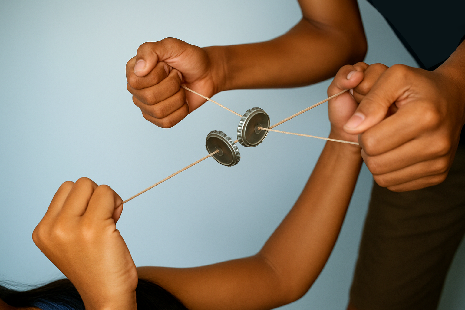 Así comenzaban las gestas: primero, la búsqueda de tapitas de refresco, que luego serían machacadas con el popular “Callao” para crear el mágico “Fu Fú”. Bastaba atravesar un hilo de nailon por dos orificios y ya teníamos un objeto hipnótico, danzante, que giraba como poseído entre los dedos, arrancando risas y competencias interminables.