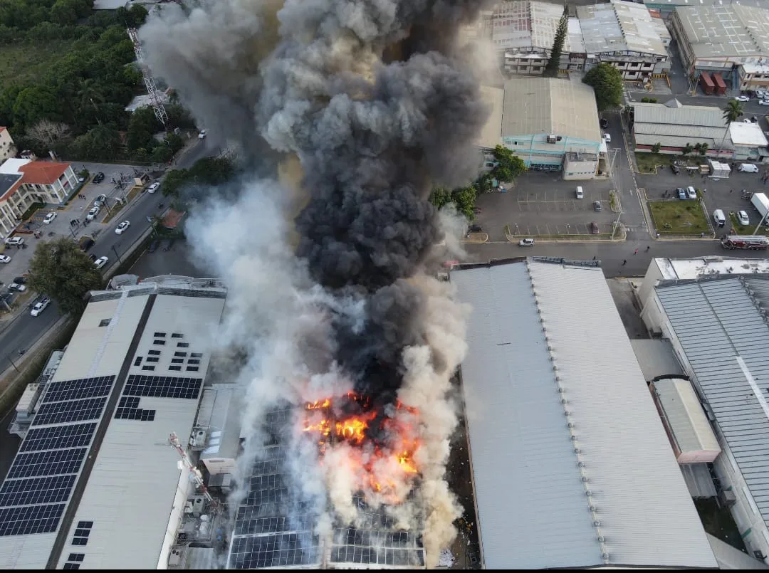 El incendio afecta una nave industrial de dos niveles dentro de la zona franca de Gurabo, donde operan una empresa de etiquetas y una fábrica de tabacos.