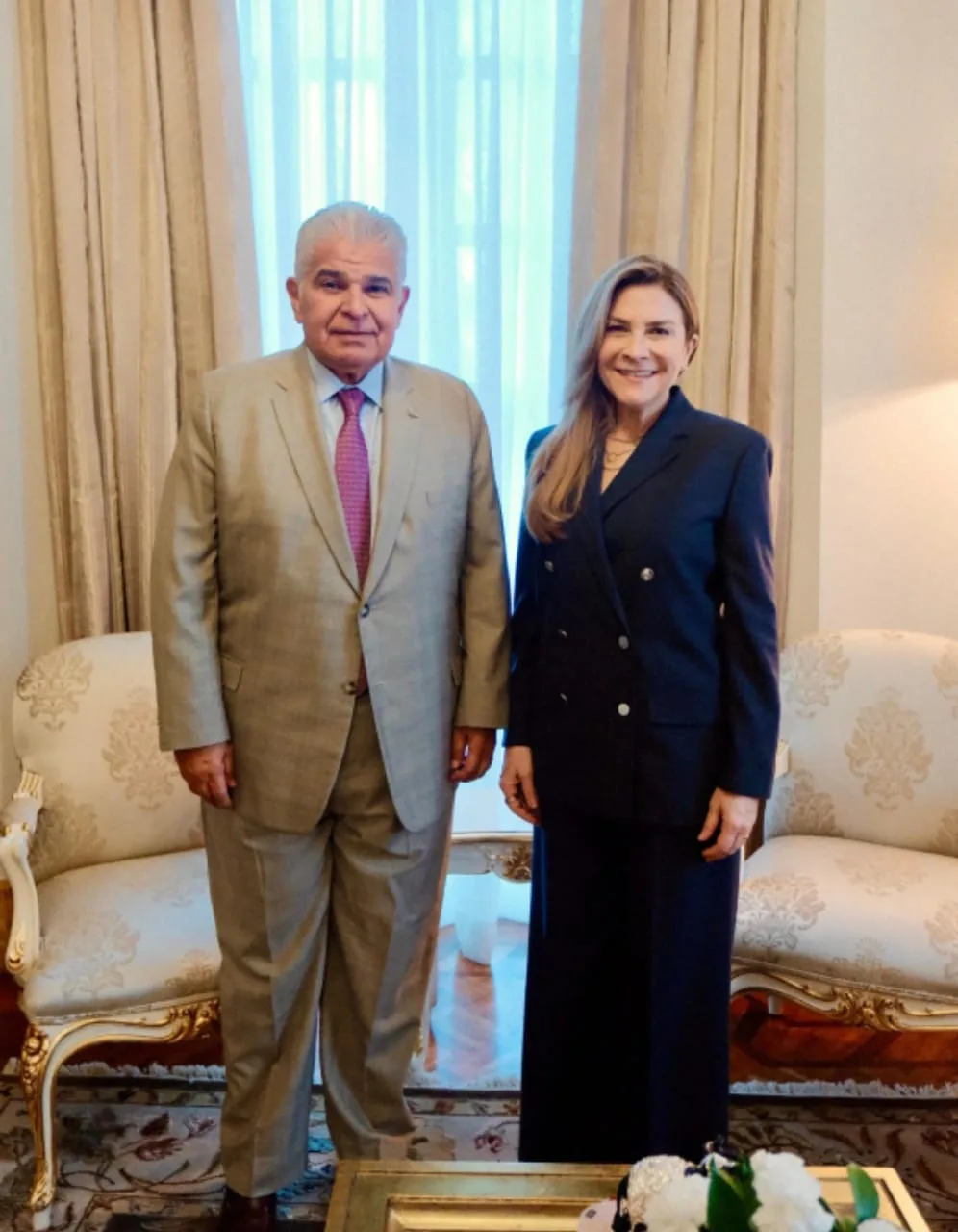 La alcaldesa del Distrito Nacional, Carolina Mejía, sostuvo este jueves una reunión con el presidente de Panamá, José Raúl Mulino, en el marco de su visita a Ciudad de Panamá.