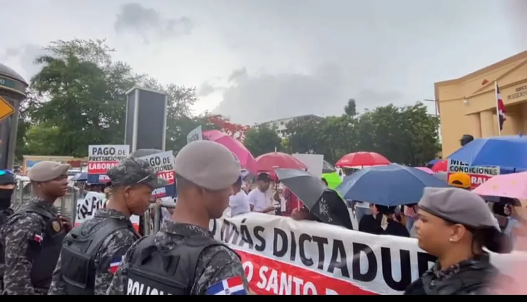 Santo Domingo. – Decenas de empleados del Metro de Santo Domingo llevaron a cabo una manifestación este jueves, exigiendo el pago de prestaciones, mejores condiciones laborales y la reincorporación de empleados desvinculados. A pesar de la intensa lluvia que azotaba el Distrito Nacional, los colaboradores comenzaron la marcha desde la intersección de la avenida 27 de febrero con Máximo Gómez, con destino al Palacio Nacional. Portando cornetas, tambores y pancartas, los presuntos desvinculados hacían oír su voz con consignas como: «Esta lucha llegará hasta el Palacio Nacional».