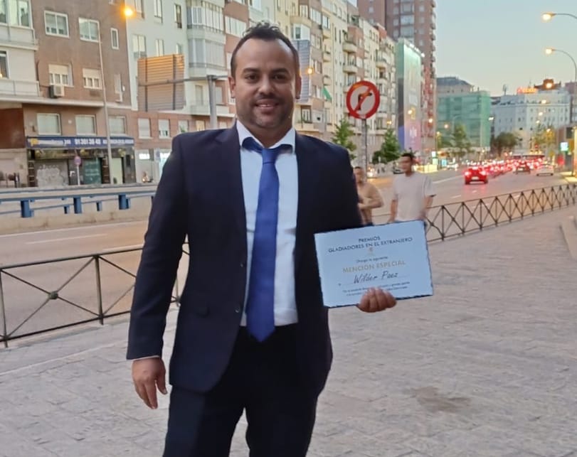 Madrid, España. – En la décima edición de los premios Gladiadores en el Extranjero, celebrada en la ciudad de Madrid, fue reconocido el periodista dominicano Wilder Páez, actual secretario general del Colegio Dominicano de Periodistas (CDP) del Distrito Nacional.