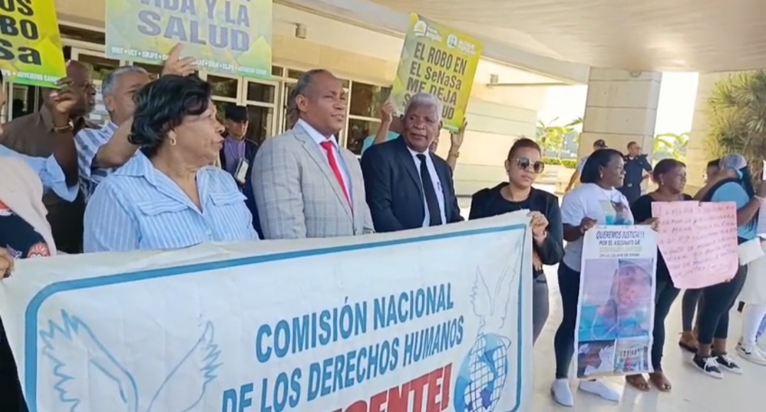 Santo Domingo., Con pancartas en mano, la Comisión de los Derechos Humanos, el Frente Amplio, Mujeres Trabajadoras y otros movimientos sociales acudieron este martes a la Procuraduría General de la República para anunciar acciones legales vinculadas al caso de presunta corrupción en el Seguro Nacional de Salud (SENASA).